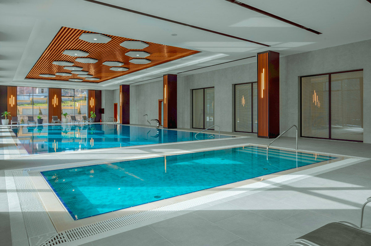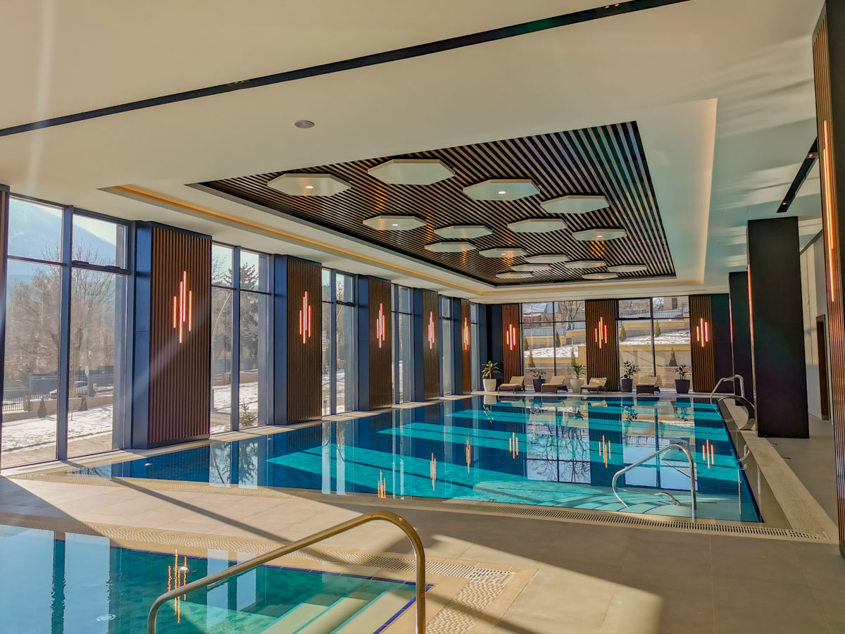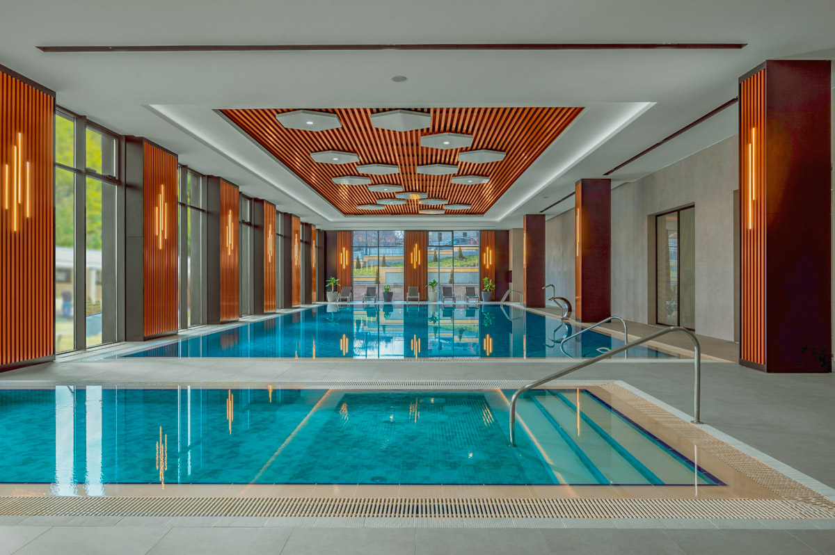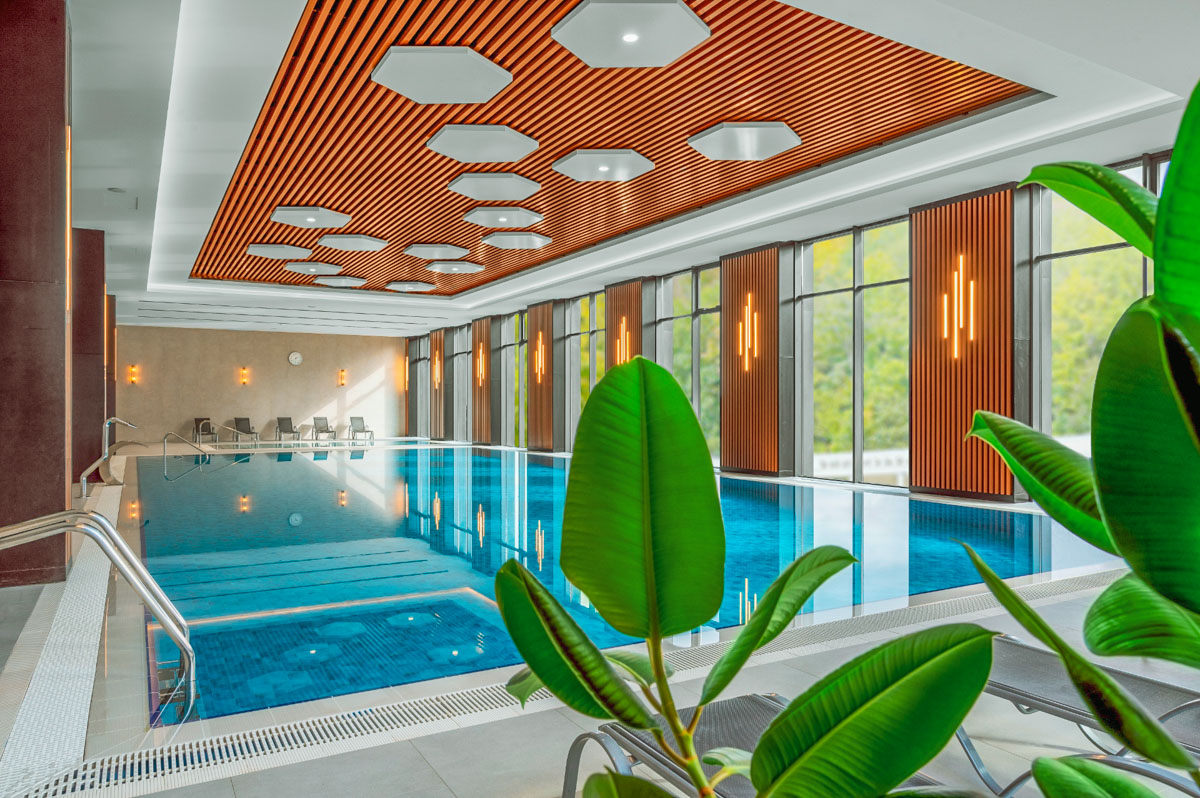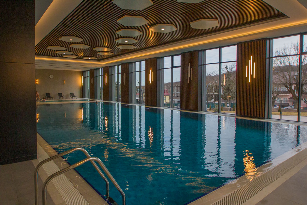 Построенный в современном стиле бассейн в санатории «Источник» г. Железноводск станет вашим любимым местом отдыха и оздоровления. Его дизайн соответствует последним тенденциям, плавая в чистейшей воде, вы сможете полюбоваться видами на город, открывающимися из окон.