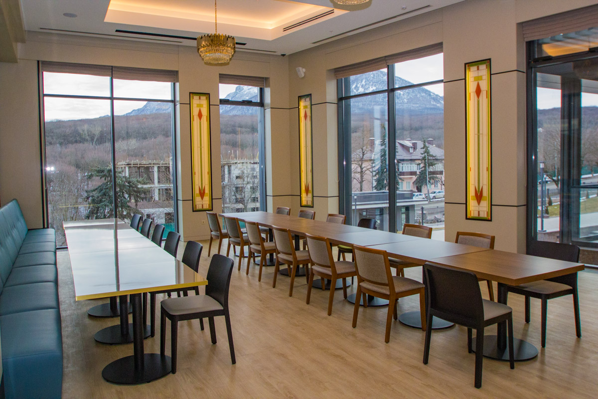 Ресторан «Бон Аппетит» в санатории «Источник» г. Железноводск – это прекрасное место для питания и отдыха гостей. К услугам отдыхающих представлено 2 зала: общий и VIP. Современный стильный дизайн помещений и высококачественная мебель сделают пребывание здесь комфортным и настраивающим на позитив.